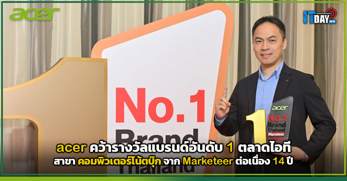 บริษัท เอเซอร์ คอมพิวเตอร์ จำกัด สร้างปรากฏการณ์อีกครั้งในวงการไอทีไทย ด้วยการคว้ารางวัล Marketeer No.1 Brand Thailand 2025 สาขา คอมพิวเตอร์โน้ตบุ๊ก แบรนด์อันดับ 1 ที่ผู้บริโภคไทยไว้วางใจมากที่สุดต่อเนื่องเป็นปีที่ 14 สะท้อนถึงความเชื่อมั่นที่ผู้บริโภคทั่วประเทศมีต่อแบรนด์เอเซอร์มาอย่างยาวนาน