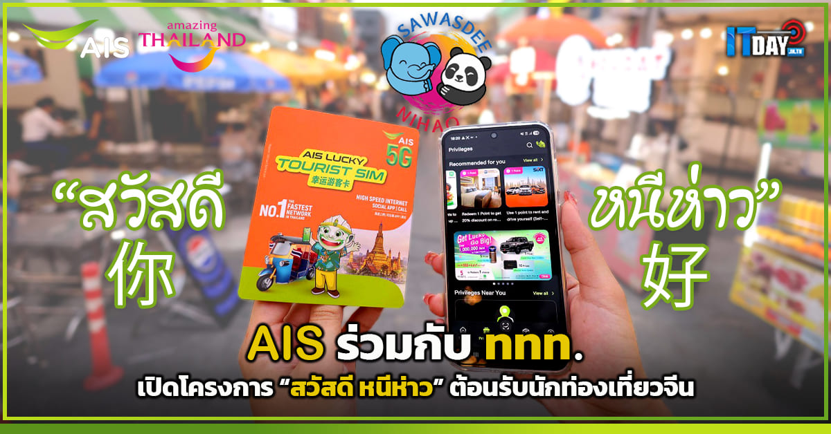 AIS ร่วมกับ ททท. เปิดโครงการ “สวัสดี หนีห่าว” ต้อนรับนักท่องเที่ยวจีน พร้อมเสิร์ฟ AIS Lucky Touris Sim ให้เชื่อมต่อ แชร์ประสบการณ์ ได้อย่างราบรื่น