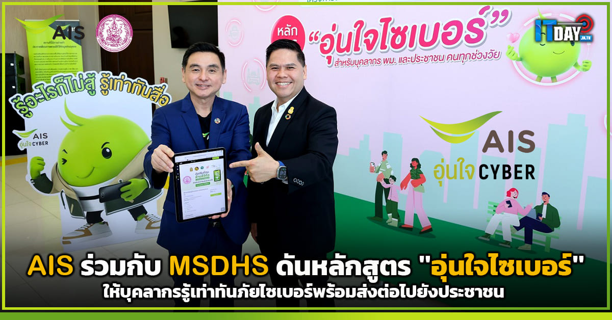 นคงของมนุษย์ (พม.) ร่วมมือกับ เอไอเอส และภาคีเครือข่ายทั้งกรมสุ ขภาพจิต กระทรวงสาธารณสุข และมหาวิทยาลัยเทคโนโลยี พระจอมเกล้าธนบุรี เดินหน้าขับเคลื่อนสร้างภูมิคุ้ มกันรับมือปัญหาภัยไซเบอร์อย่ างยั่งยืน พร้อมส่งต่อทักษะความฉลาดทางดิ จิทัล “หลักสูตรอุ่นใจไซเบอร์” ไปยังบุคลากรของ พม. และ ประชาชนคนทุกช่วงวัย เพื่อสร้างพลเมืองดิจิทัล (Digital Citizen) ที่มีภูมิคุ้มกัน สามารถใช้งานสื่อออนไลน์ได้อย่ างถูกต้อง ปลอดภัย และสร้างสรรค์ อันจะนำมาสู่การยกระดับสุ ขภาวะดิจิทัลให้กับคนไทยที่รู้ เท่าทันทุกภัยไซเบอร์