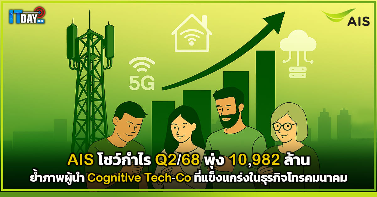 AIS โชว์กำไร Q2/68 พุ่ง 10,982 ล้าน ย้ำภาพผู้นำ Cognitive Tech–Co ที่แข็งแกร่งในธุรกิจโทรคมนาคม