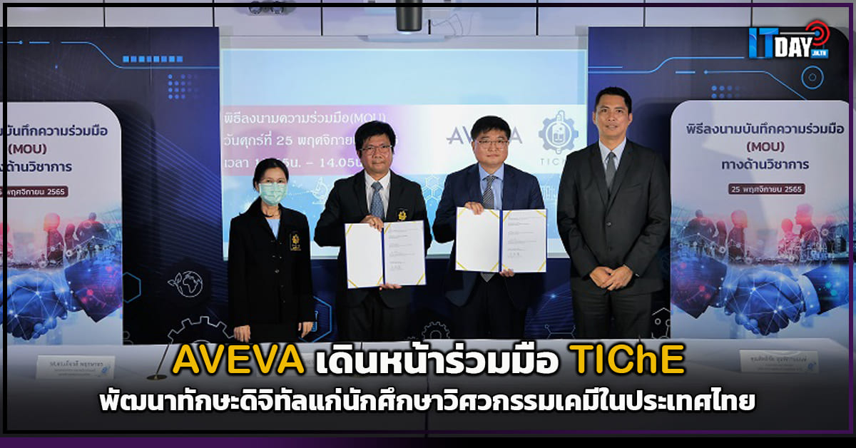 อาวีวา (AVEVA) ผู้นำระดับโลกด้านซอฟต์แวร์อุตสาหกรรมร่วมลงนามในบันทึกความเข้าใจ (MOU) กับสมาคมวิศวกรรมเคมี และเคมีประยุกต์แห่งประเทศไทย (TIChE) เพื่อส่งเสริมทักษะดิจิทัลแก่นักศึกษาวิศวกรรมเคมีในประเทศไทย…