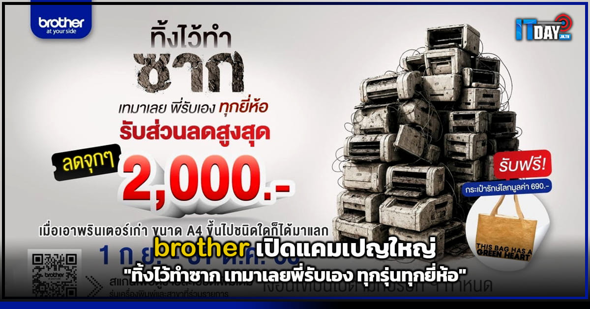 brother เปิดแคมเปญใหญ่ “ทิ้งไว้ทำซาก เทมาเลยพี่รับเอง ทุกรุ่นทุกยี่ห้อ” แลกเครื่องเก่า รับส่วนลดสูงสุด 2,000 บาท