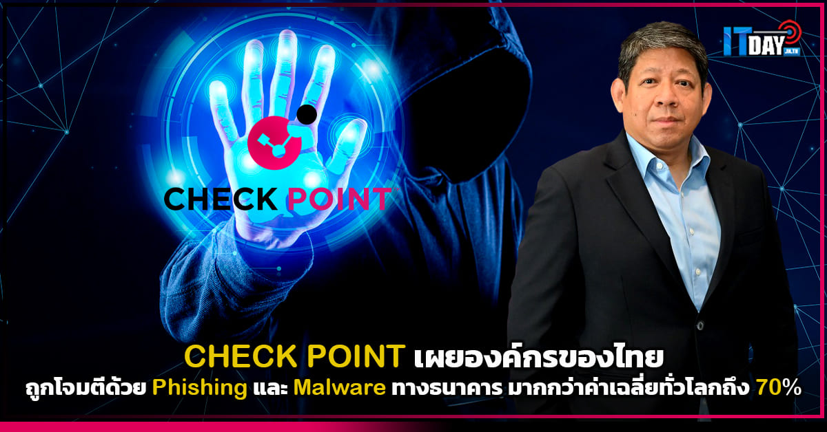 เช็ค พอยท์ (CHECK POINT) เผยองค์กรของไทยถูกโจมตีทางไซเบอร์ในรูปแบบฟิชชิ่ง และ การหลอกลวงทางธนาคาร มากกว่าค่าเฉลี่ยทั่วโลกถึง 70%…