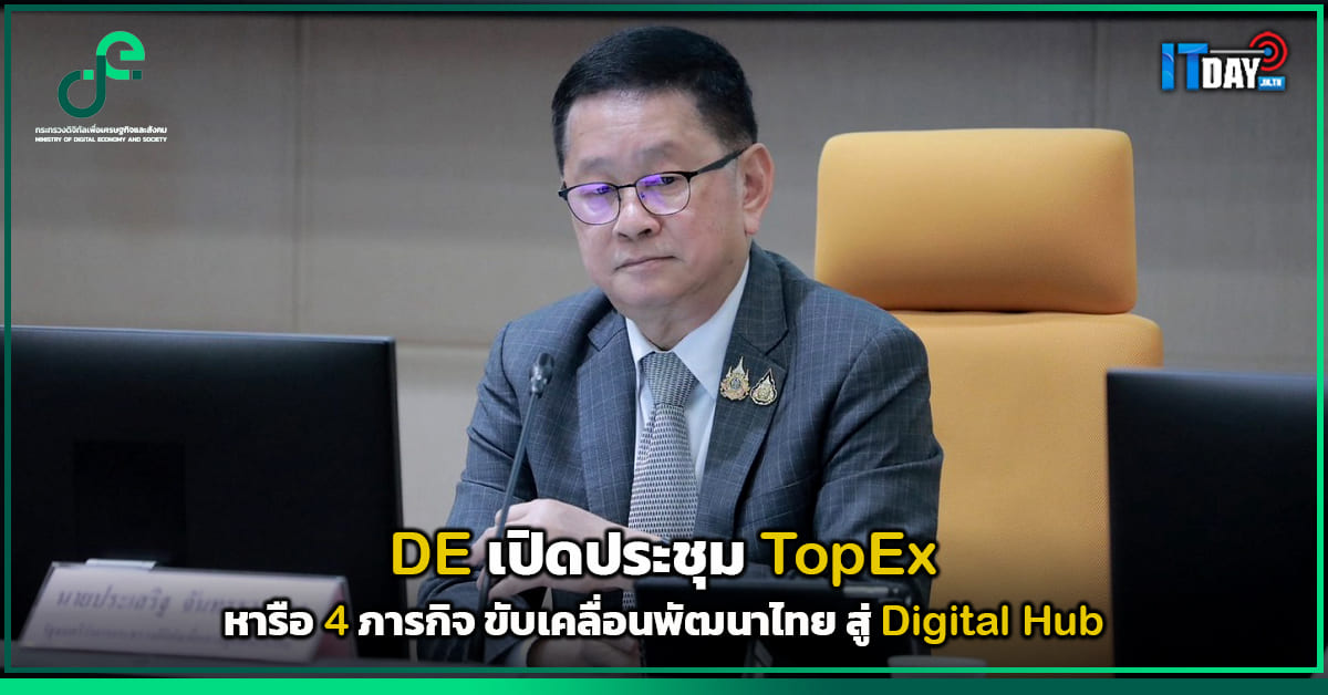 กระทรวงดิจิทัลเพื่อเศรษฐกิจ และสังคม หรือ ดีอี (DE) เปิดประชุม TopEx หารือ 4 ภารกิจ เพื่อขับเคลื่อนนโยบายเศรษฐกิจ-สังคมดิจิทัล มุ่งพัฒนาไทย สู่ Digital Hub…