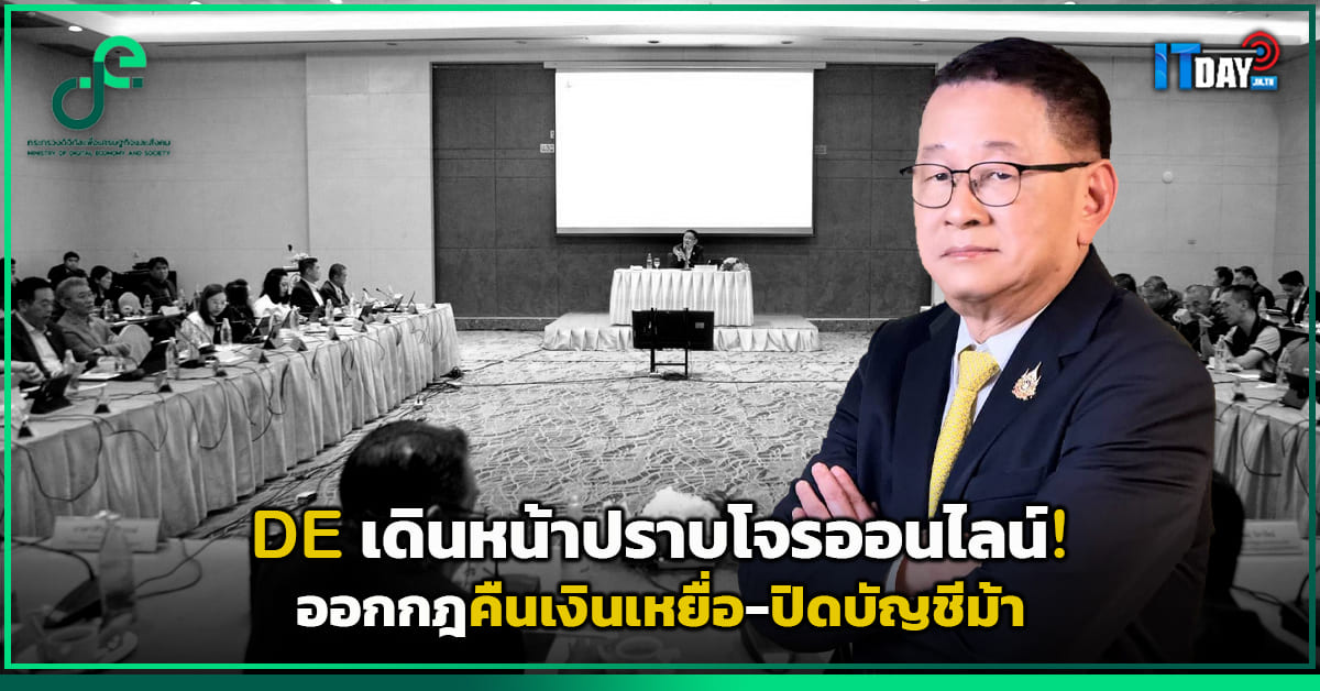 ดีอี (DE) เตรียมออกกฎกระทรวงฯ คืนเงินเร่งเยียวยาผู้เสียหาย รุกปราบ “โจรออนไลน์” จัดการบัญชีม้าแล้วกว่า 900,000 บัญชี…