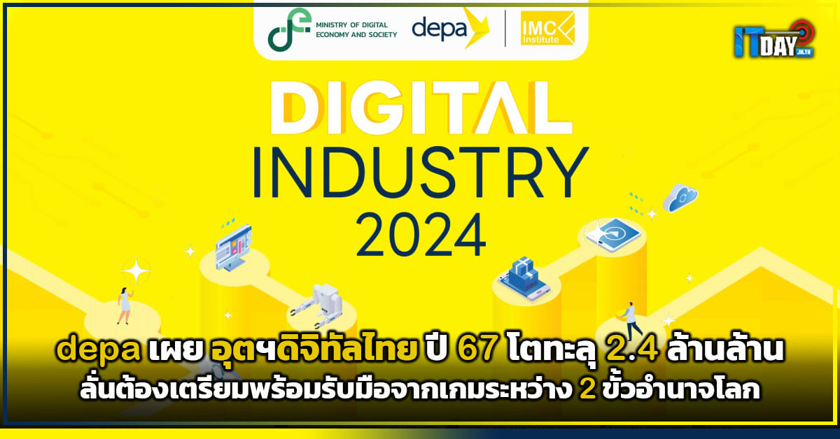 depa เผย อุตฯดิจิทัลไทยปี 67 โตทะลุ 2.4 ล้านล้าน ชี้ฮาร์ดแวร์อัจฉริยะแรงสุด ลั่นต้องเตรียมพร้อมรับแรงสั่นสะเทือนจาก 2 ขั้วอำนาจโลก