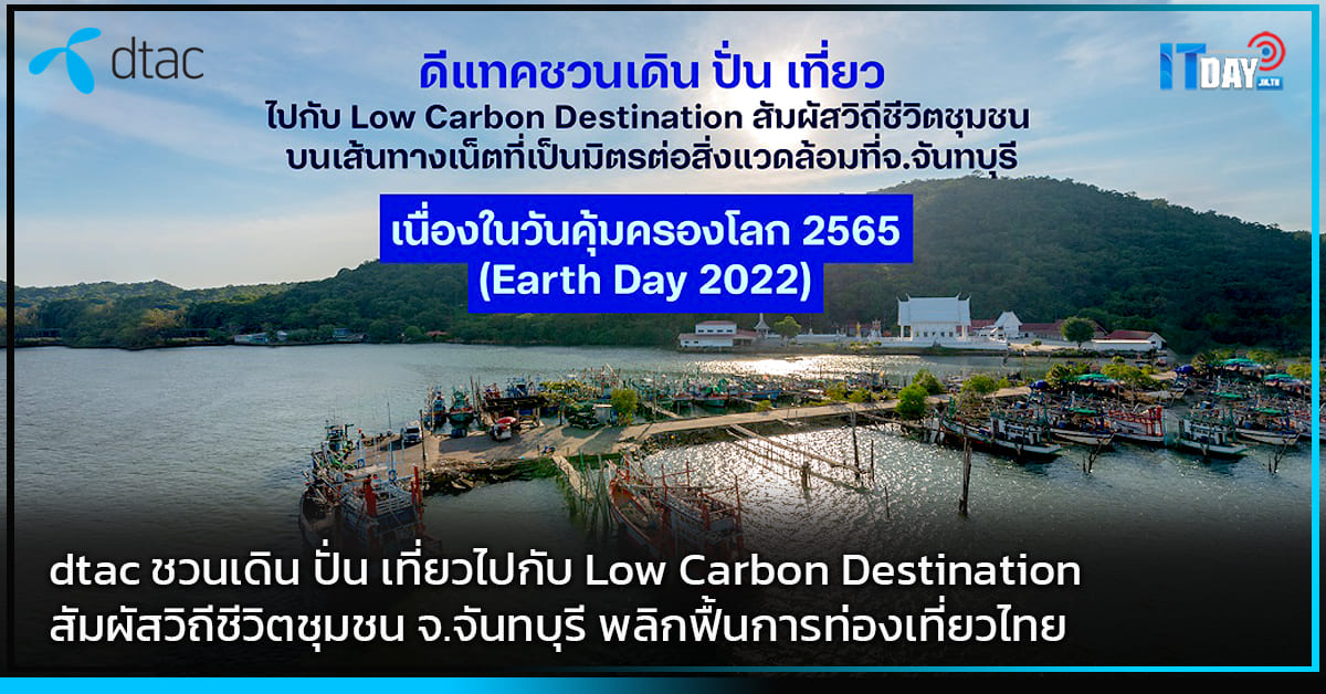 ดีแทค (dtac) ชวนเดิน ปั่น เที่ยวไปกับ Low Carbon Destination สัมผัสวิถีชีวิตชุมชนบนเส้นทางเน็ตที่เป็นมิตรต่อสิ่งแวดล้อมที่จ.จันทบุรี พลิกฟื้นการท่องเที่ยวไทย ในวันคุ้มครองโลก 2565…