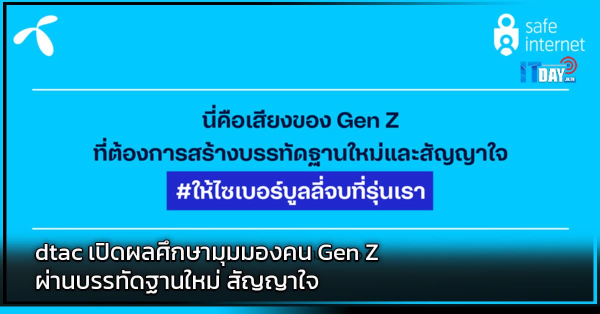 ดีแทค (dtac) ร่วมกับ คณะเศรษฐศาสตร์ จุฬาฯ เปิดผลศึกษามุมมองคน Gen Z ผ่านบรรทัดฐานใหม่ สัญญาใจ #ให้ไซเบอร์บูลลี่จบที่รุ่นเรา…
