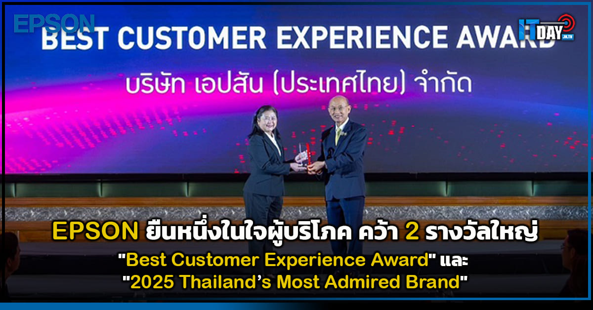 เอปสัน (EPSON) ยืนหนึ่งในใจผู้บริโภค คว้า 2 รางวัลใหญ่ “Best Customer Experience Award” และ “2025 Thailand’s Most Admired Brand” จากเวที Thailand Top Company Awards 2025 และนิตยสาร BrandAge…