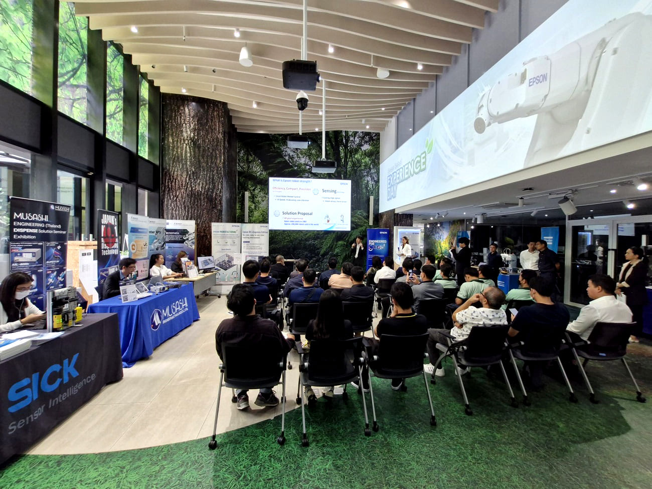 ล่าสุด เอปสัน ประเทศไทย ได้จัดกิจกรรม “Epson Robot Experience Day 2025″ ด้วยการเชิญตัวแทนจากบริษัทพันธมิตร ได้แก่ เดนท์สุ โซเคน (ประเทศไทย), มูซาชิ เอ็นจิเนียริ่ง (ประเทศไทย), แอตลาส คอปโก้ (ประเทศไทย) และ ซีซีเอส เอ็มวี (ประเทศไทย) จำกัด