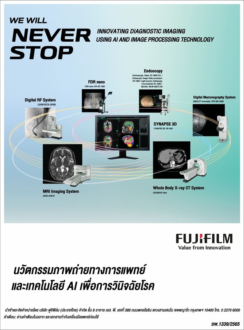 “ที่ผ่านมา ฟูจิฟิล์ม ประเทศไทย ได้รับความไว้วางใจจากบุ คลากรทางการแพทย์มาอย่ างยาวนานกว่า 3 ทศวรรษ นับตั้งแต่การก่อตั้งสำนั กงานในไทยเมื่อปี ค.ศ. 1989 เพราะจุดแข็งของเรา คือ ความรู้ความเชี่ยวชาญด้ านเทคโนโลยีเกี่ยวกับการถ่ ายภาพทางการแพทย์อย่างครบวงจร