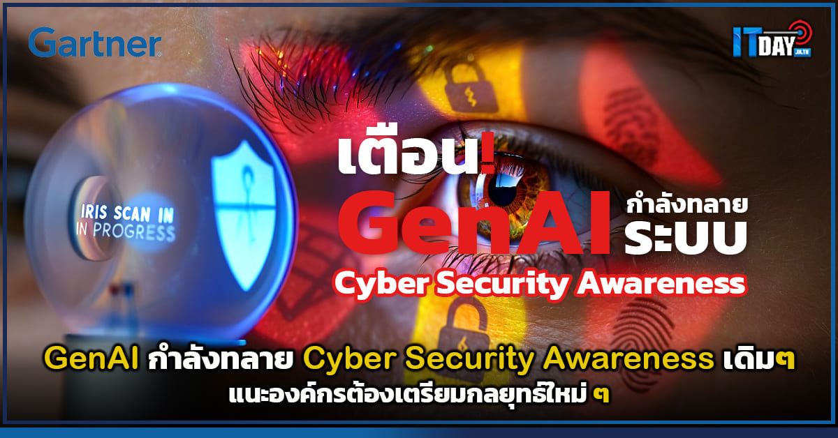 - การ์ทเนอร์ เผยรายงานล่าสุดชี้ GenAI กำลังทำให้การสร้างความตระหนักรู้ด้าน Cybersecurity แบบเดิม ๆ ล้มเหลว เนื่องจากแฮกเกอร์ใช้ AI สร้างการโจมตีที่แนบเนียนเกินกว่ามนุษย์จะสังเกตได้ ITday พาไปเจาะลึก 3 กลยุทธ์ใหม่ที่องค์กรระดับโลกต้องนำมาใช้เพื่อรับมือกับภัยคุกคามยุค AI ตั้งแต่การใช้ AI-Powered Defense ไปจนถึงการปรับวัฒนธรรมองค์กรให้เป็นระบบรักษาความปลอดภัยเชิงรุก