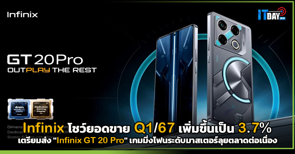 Infinix โชว์ยอดขาย Q1/67 พุ่งเพิ่มขึ้นเป็น 3.7% เตรียมส่ง “Infinix GT 20 Pro” ลุยต่อเนื่อง