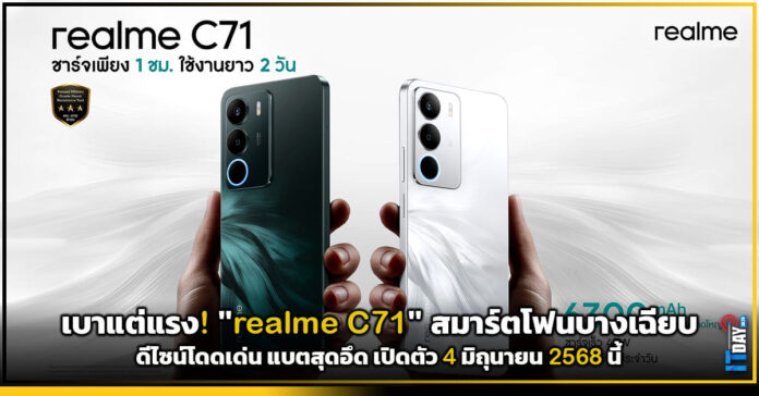 เบาแต่แรง! “realme C71” สมาร์ตโฟนบางเฉียบ ดีไซน์โดดเด่น แบตสุดอึด เปิดตัว 4 มิถุนายน 2568 นี้