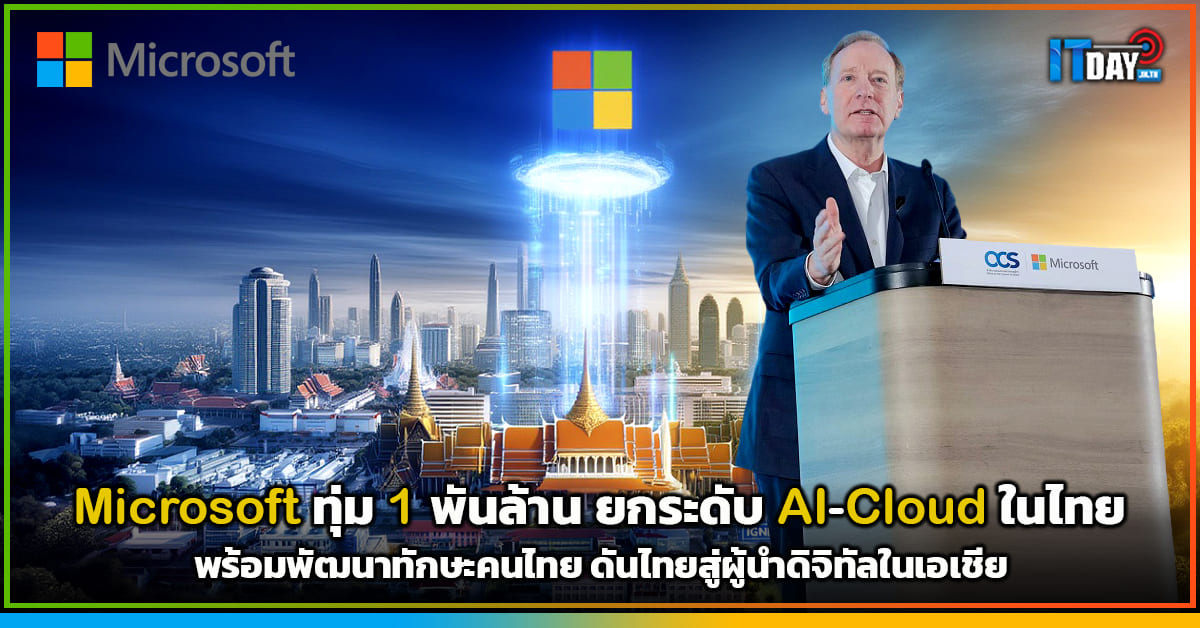 โดย ไมโครซอฟท์ ประกาศมูลค่าการลงทุนมากกว่า 1 พันล้านดอลลาร์สหรัฐ ระหว่างปี 2569-2571 พัฒนาโครงสร้างพื้นฐานด้าน Cloud และ AI ในประเทศไทย พร้อมสนับสนุนการดำเนินงานด้านอื่น ๆ ซึ่งเป็นหัวใจสำคัญ
