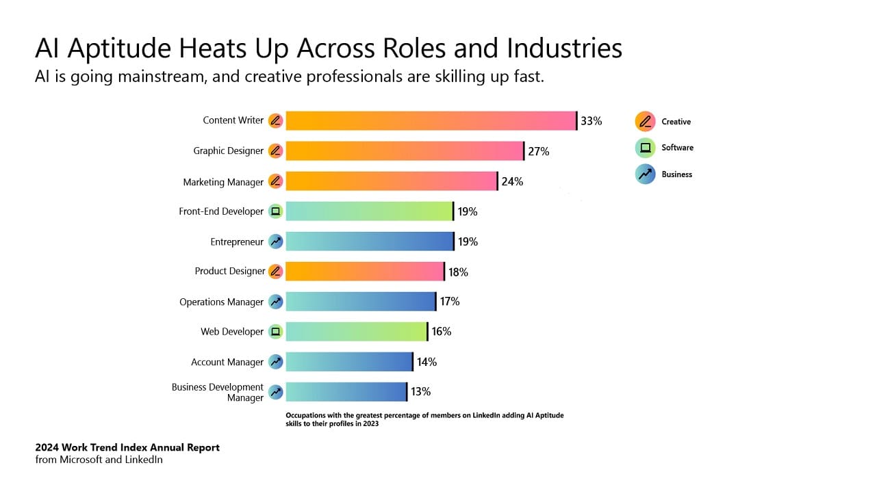 และการศึกษาวิจัยลูกค้าของบริษัทที่อยู่ใน Fortune 500 เพื่อแสดงให้เห็นว่า ในช่วงระยะเวลาเพียง 1 ปีที่ผ่านมา นวัตกรรม AI ได้มีอิทธิพลต่อรูปแบบการทำงาน การบริหาร และการจ้างงานของผู้คนทั่วโลก โดยในปี 2024 ถือเป็นปีของ AI เพื่อการทำงานอย่างแท้จริง หลังจากที่มีพนักงานทั่วโลกนำ Generative AI มาใช้ทำงานเพิ่มขึ้น