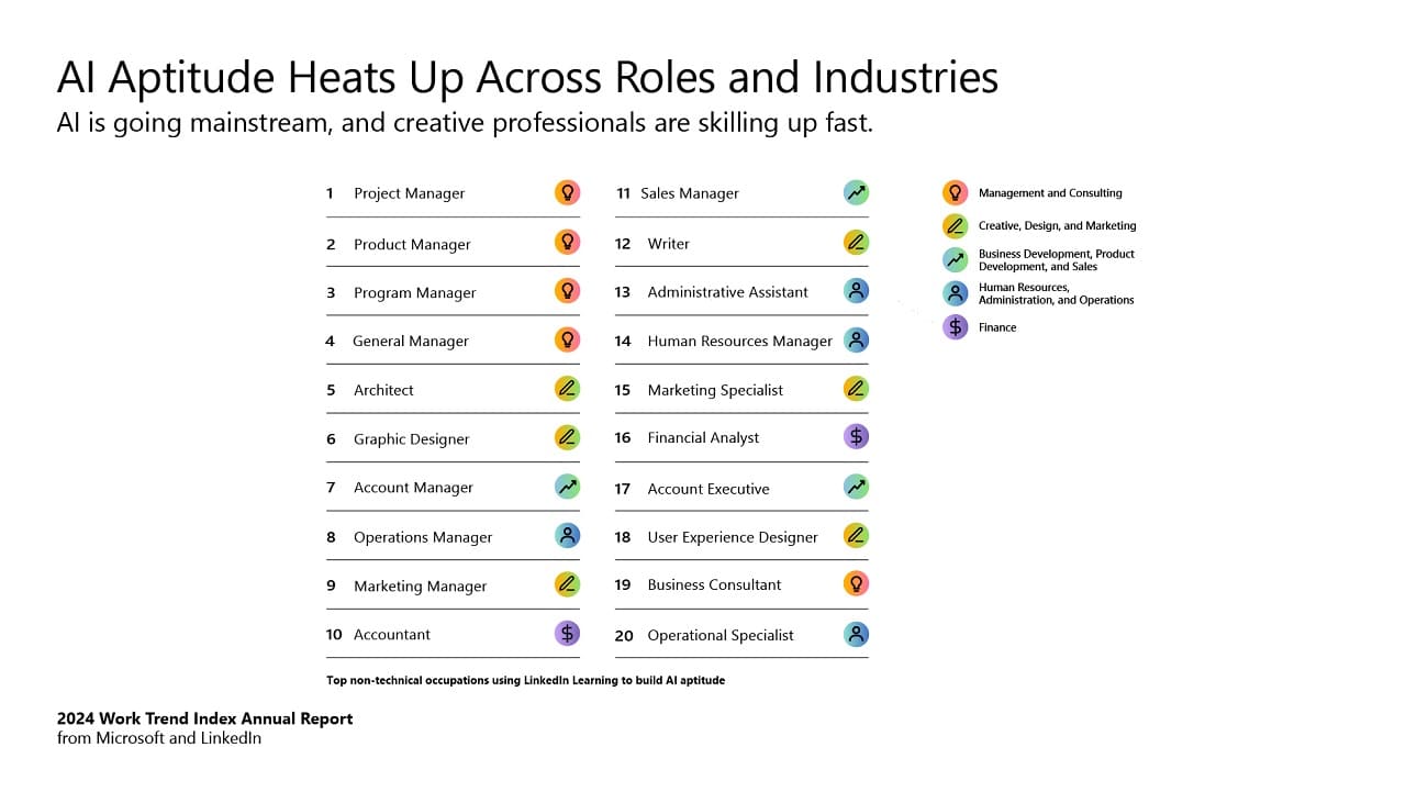 เกือบเท่าตัวในช่วง 6 เดือนที่ผ่านมา ขณะที่ผู้ใช้ ลิงค์อิน จำนวนไม่น้อยได้นำเอาทักษะความสามารถที่เกี่ยวกับ AI มาเพิ่มเติมลงในเรซูเม่ของตนมากขึ้น ทางด้านผู้บริหาร ส่วนใหญ่มีมุมมองว่าจะไม่จ้างผู้สมัครที่ไม่มีทักษะด้าน AI แต่ขณะเดียวกัน ผู้บริหารจำนวนมาก ทั้งในเอเชีย และทั่วโลก ยังคงกังวลเกี่ยวกับการขาดวิสัยทัศน์ด้าน AI