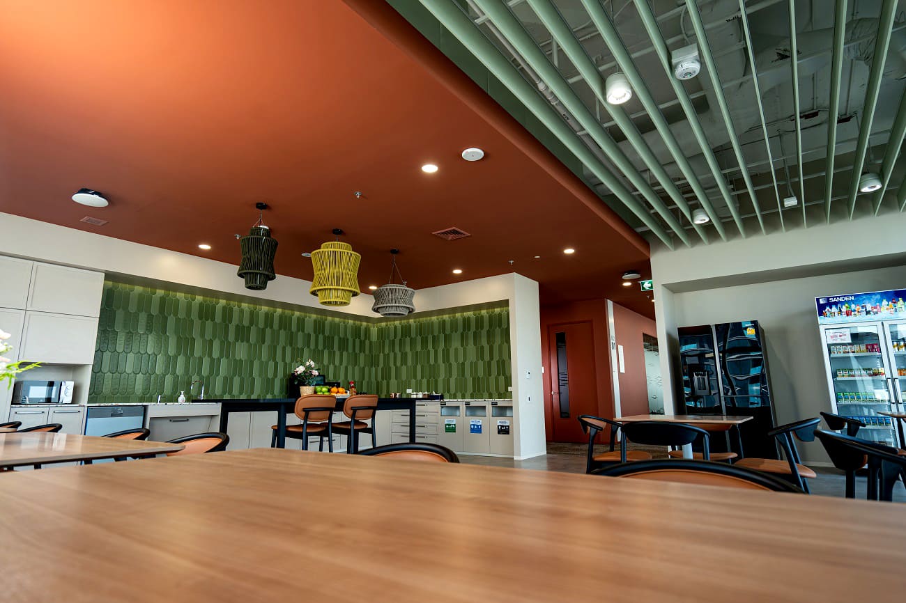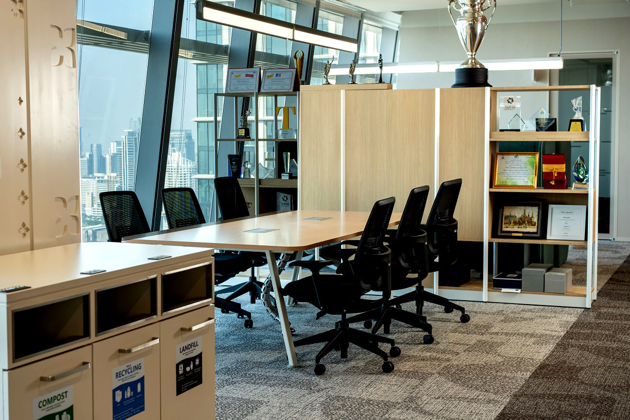 เช่น ระบบไฟในพื้นที่ทำงานที่ออกแบบมาเพิ่มลดความอ่อนล้าของสายตา โต๊ะทำงานทั้งหมดสามารถปรับระดับความสูงได้ การเพิ่มห้อง Focus room สำหรับการทำงานที่ต้องใช้สมาธิสูง และ Phone room สำหรับการคุยโทรศัพท์ส่วนตัว รวมถึงห้องดูแล และให้นมบุตรสำหรับพนักงานที่เป็นคุณพ่อหรือคุณแม่