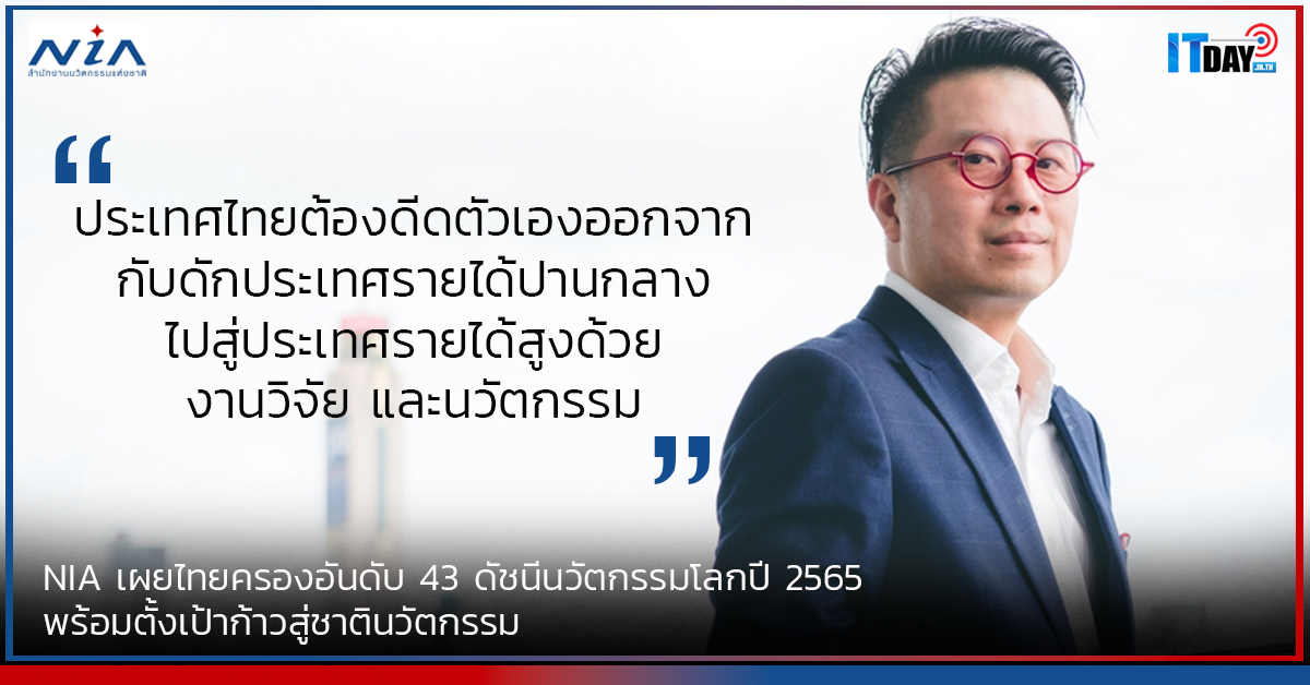 NIA เผยไทยครองอันดับ 43 ดัชนีนวัตกรรมโลกปี 2565 พร้อมตั้งเป้าก้าวสู่ชาตินวัตกรรม