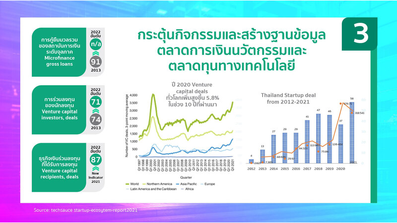 กระตุ้นกิจกรรม และสร้างฐานข้อมูลตลาดการเงินนวัตกรรม และตลาดทุนทางเทคโนโลยี