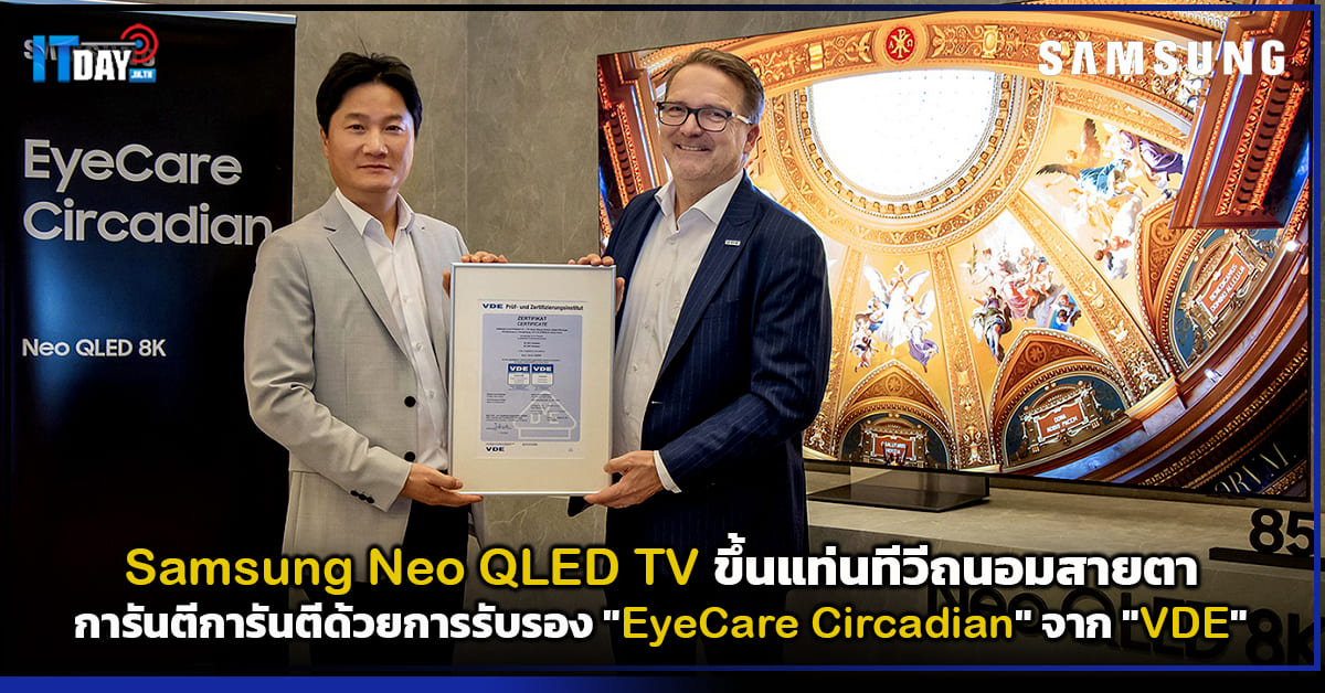 Samsung Neo QLED TV ขึ้นแท่นทีวีถนอมสายตาการันตีการันตีด้วยการรับรอง “EyeCare Circadian” จาก “VDE“