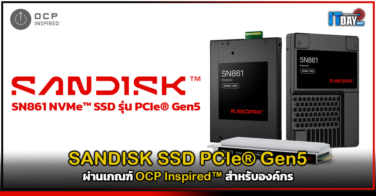 แซนดิสก์ (Sandisk) ประกาศว่า SANDISK® SN861 NVMe™ SSD รุ่น PCIe® Gen5 ได้รับการรับรอง OCP Inspired™ จากองค์กร Open Compute Project (OCP) โดยเป็นไปตามข้อกำหนด Datacenter NVMe SSD Specification