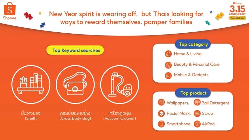 ช้อปปี้ เปิดตัว ช้อปปี้ 3.15 Consumer Day เป็นครั้งแรกเพื่อมอบความคุ้มค่า และความสนุกสนานให้นักช้อปทุกคน ปัจจุบันนี้ผู้บริโภคหันมาใช้ช่องทางอีคอมเมิร์ซเพื่อซื้อของตลอดทั้งปี สำหรับแคมเปญ ช้อปปี้ 3.15 Consumer Day นี้เตรียมพบกับสินค้าหลากหลายประเภท พร้อมคุ้มกว่าเดิมด้วยโปรโมชั่นส่งฟรีขั้นต่ำ 0 บาท