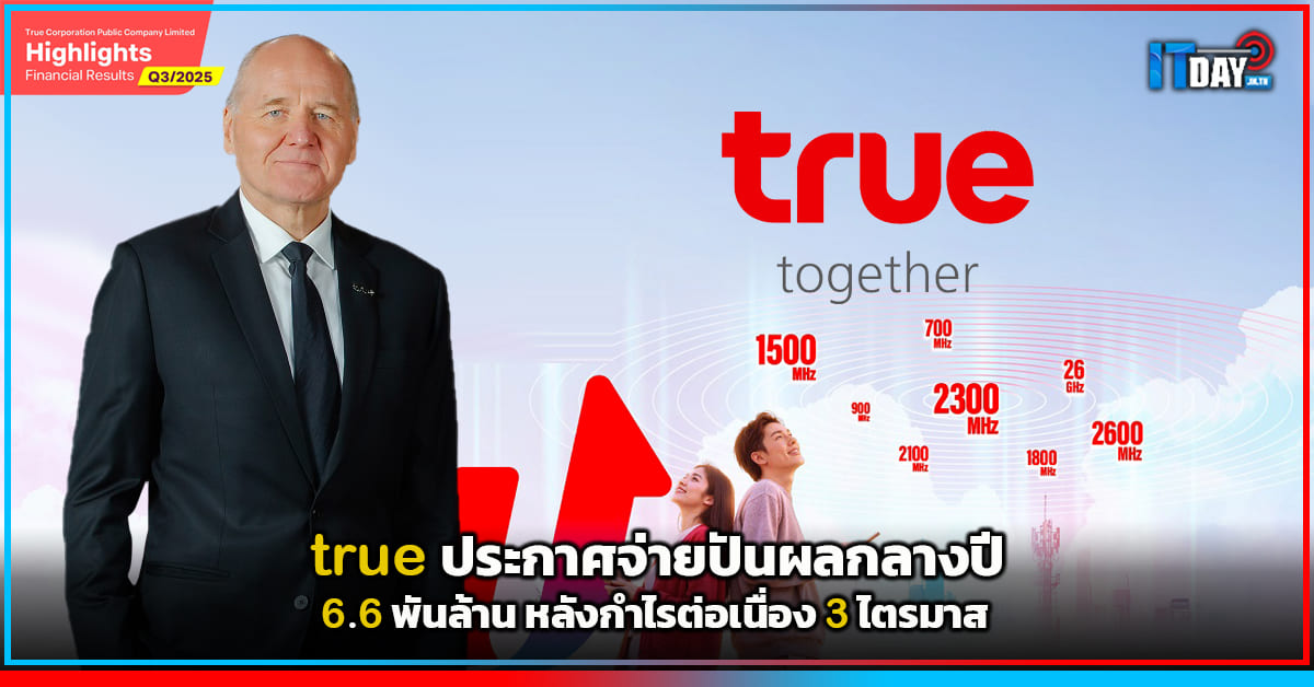 ซิกเว่ เบรกเก้ ประธานคณะผู้บริหารกลุ่ม บริษัท ทรู คอร์ปอเรชั่น จำกัด (มหาชน) กล่าวว่า เมื่อสิ้นสุดไตรมาส 3/2568 เราคงความสามารถในการทำกำไรได้อย่างต่อเนื่อง โดยมีหมุดหมายสำคัญคือการจ่ายเงินปันผลครั้งแรกให้ผู้ถือหุ้น ความสามารถในการทำกำไรที่แข็งแกร่งขึ้นจากการปรับตัวดีขึ้นของ EBITDA