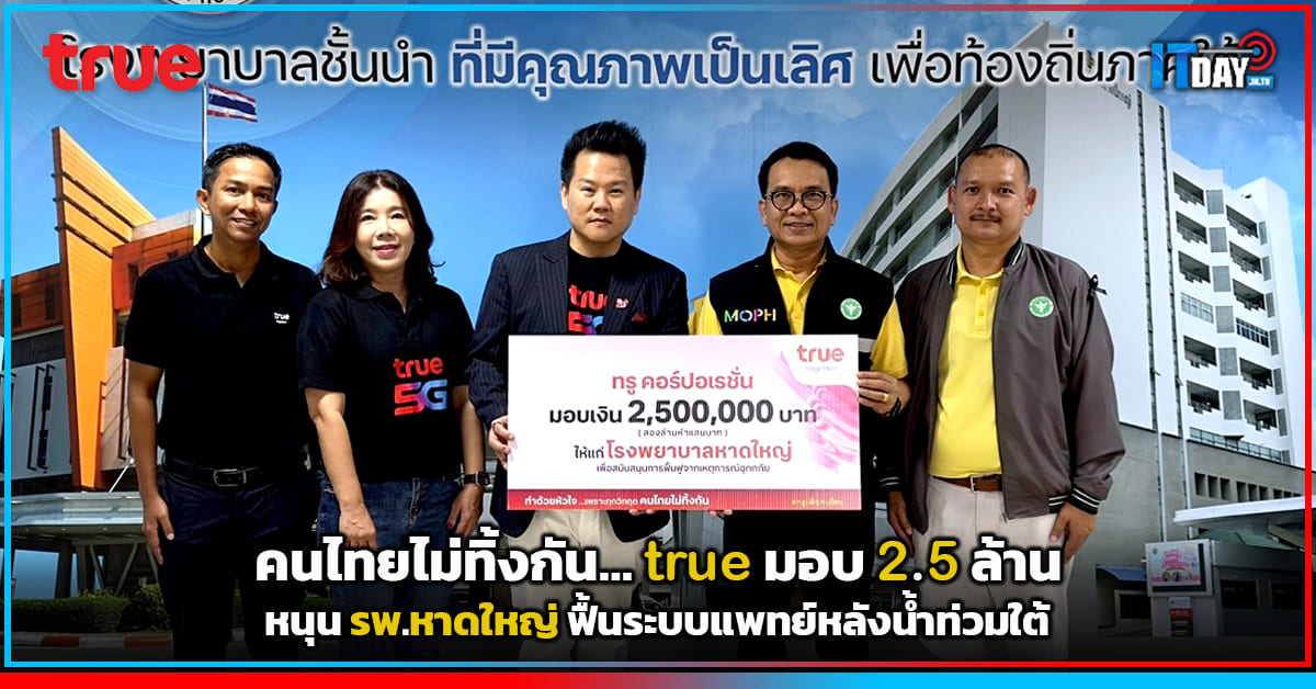 คนไทยไม่ทิ้งกัน… true มอบ 2.5 ล้าน หนุน รพ.หาดใหญ่ ฟื้นระบบแพทย์หลังน้ำท่วมใต้