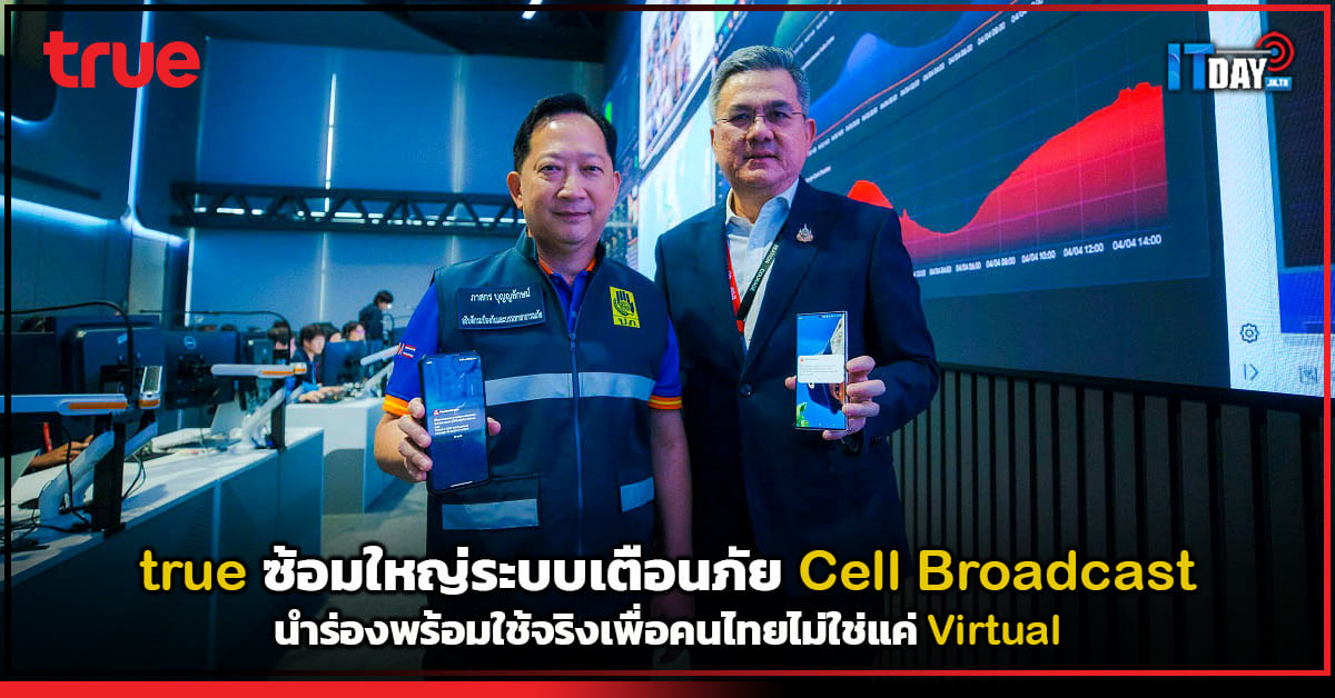 เหตุการณ์แผ่นดินไหวครั้งล่าสุดที่สร้างความตื่นตระหนกให้ประชาชนทั่วประเทศไทย ได้ตอกย้ำถึงความจำเป็นเร่งด่วนของระบบแจ้งเตือนภัยที่มีประสิทธิภาพและทันท่วงที ด้วยความตระหนักถึงภารกิจสำคัญนี้ ทรูจึงได้เร่งดำเนินการติดตั้งระบบ Cell Broadcast ให้ครอบคลุมทุกเสาสัญญาณ 4G และ 5G ทั่วประเทศเป็นที่เรียบร้อยรายแรก โดยปัจจุบันพร้อมใช้งานแล้วในรูปแบบ Virtual Cell Broadcast